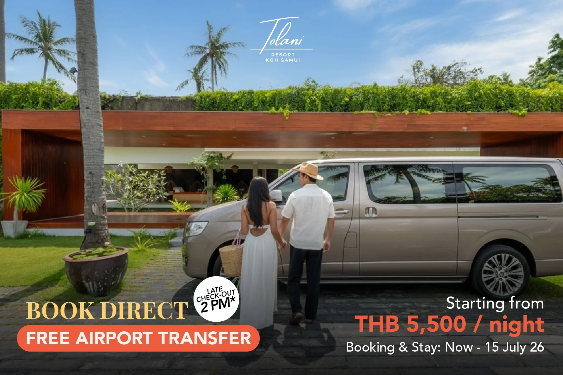 When you book your stay at Tolani Resort Koh Samui, enjoy seamless airport transfers straight to the resort so you can arrive quickly and comfortably. Along with your stay, you’ll also receive exclusive package benefits designed for the perfect escape, including sauna, dip pool, Muay Thai classes, aqua aerobics, and many more